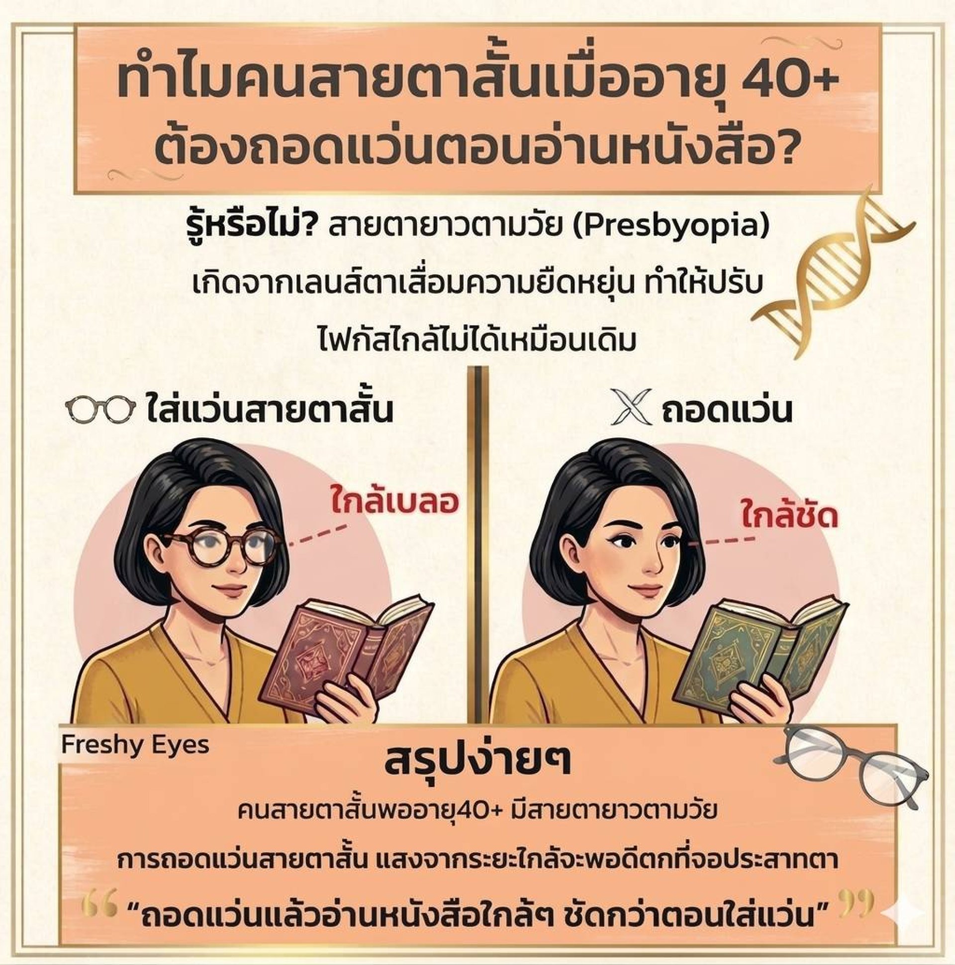 คนสายตาสั้น พออายุ 40+ แล้วสายตายาวตามวัย